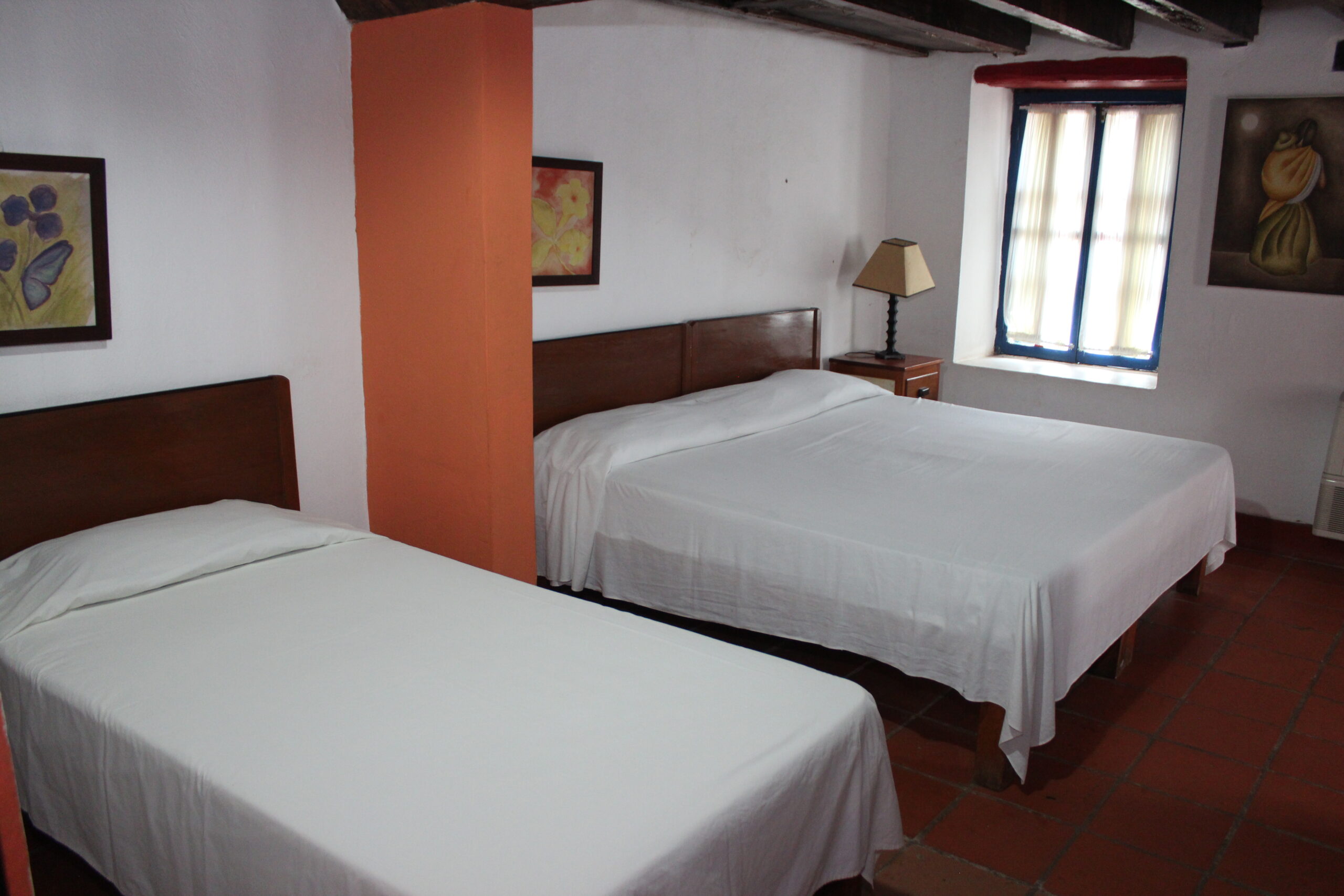 Nombre - Tipo de camas Oficina - 1 Cama King size y 1 Cama individual * Pilar - 2 Camas matrimoniales * Tesoro - 2 Camas matrimoniales * Mensajera - 1 Cama matrimonial 1 Cama individual, P. Alta * Huapango - 2 Camas matrimoniales * Gallero - 1 Cama matrimonial 1 Cama individual, P. Alta *